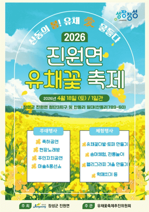 양정옥 유채꽃축제추진위원회 위원장은 “주민들과 함께 정성을 다해 유채꽃을 가꾼 만큼, 많이 찾아 주셔서 좋은 추억을 만들고 가셨으면 좋겠다”고 말했다.